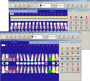 ADSTRA Charting tools, covering General, Restorative, Endodontic, and Periodontal headings, include a diverse assortment of treatment options. Existing conditions, completed treatments, and planned treatments can all be tracked. General Charting consists of more than 16 charting heading choices and includes charting of pre-existing conditions and head and neck, occlusal, and TMJ examinations, as well as free-hand general notes or tooth-specific notes. Restorative Charting has over 10 levels of charting choices and includes mapping of cavities and restorations. The Endodontic Charting Tools deals with root canal treatments and conditions of treated root canals and has over six levels of charting tools. Periodontal Charting includes management of measurements for pockets depths, suppuration, plaque, bleeding, gingival recession, furcation, mobility, and MAG. All charting is represented graphically, making comparisons of patient exams quick and easy.