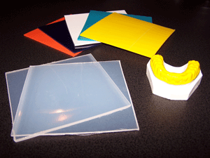DuraGuard Thermoform Mouth Guard Sheets are made up of a unique material that has an excellent combination of protection and comfort with superior conformity to the model, resulting in a true custom fit. They can be used to create custom formed athletic mouth guards, soft night guards and bruxism splints. Circle and square sheets are available to fit most vacuum and pressure form machines. Wide arrays of colors are available for matching team colors.