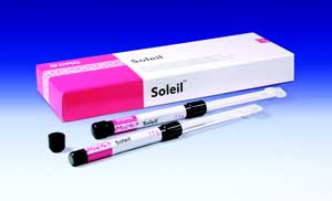 Soleil represents the newest generation in inlay material.  It is available in a universal shade in packages of 2.5 g Automix syringes.
