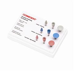 Cosmedent’s new Porcelain Polishing Kit contains all that you need to create a high shine on porcelain restoration. Designed for the Doctor who wants to finish and polish porcelain restorations chariside, Porcelain Polishers will help you increase the esthetics of porcelain restorations. This kit includes 9 reusable burs, one point, cup and wheel of each grit; coarse for initial contouring, medium for finishing, and superfine for developing a final polish. All items are also sold individually.