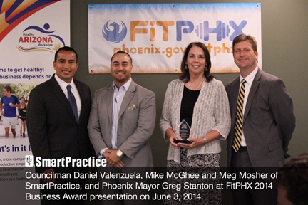 Prior to winning a FitPHX award, SmartPractice was tapped to assist with the City’s wellness initiative. "Everyone at SmartPractice is honored to be named a FitPHX Business Winner,” says VP of Human Resources Meg Mosher. “We are proud to partner with the FitPHX initiative alongside Mayor Stanton and Councilman Valenzuela. We share their passion for wellness and for making the city of Phoenix one of the healthiest places to live. At SmartPractice, our commitment to wellness extends beyond our employees and families to our customers and communities.”