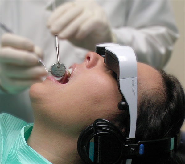 Increase your efficiency by making your patients more relaxed.  Patients can watch an assortment of 2D or 3D movies, TV shows, video games, or informational programs provided by your office.  They can select their favorites by plugging into a standard DVD player or their own iPad, iPhone or iPod Touch.