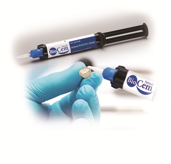 It also features a unique shock-absorbing rubberized resin component that makes it much tougher than traditional cements. Additionally, BioCem releases phosphate, calcium and fluoride ions into the oral environment, and it has been formulated and packaged into a low-waste delivery system.