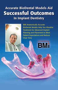 BMi – Biomedical Modeling Inc. – has published a brochure outlining the ways BioDental models clearly distinguish between bone and soft tissue while highlighting the inferior alveolar nerve channel to aid in visualizing, planning, and placing dental implants.